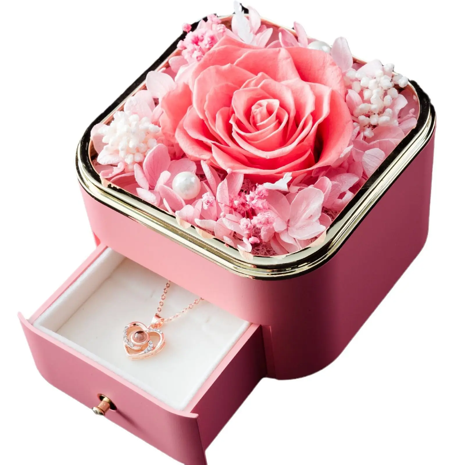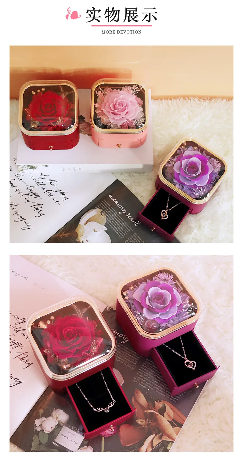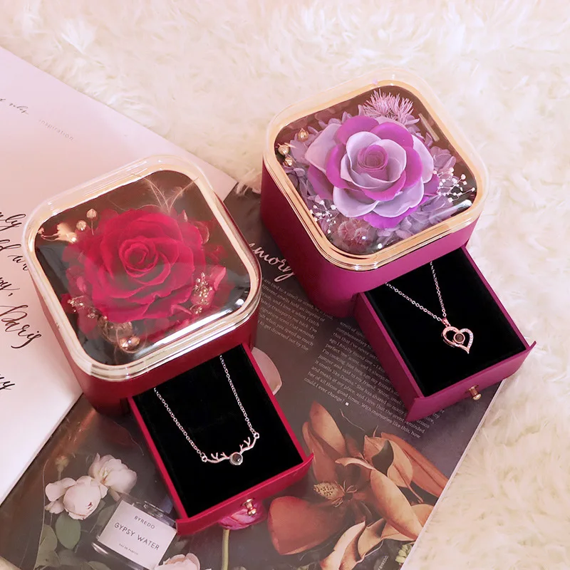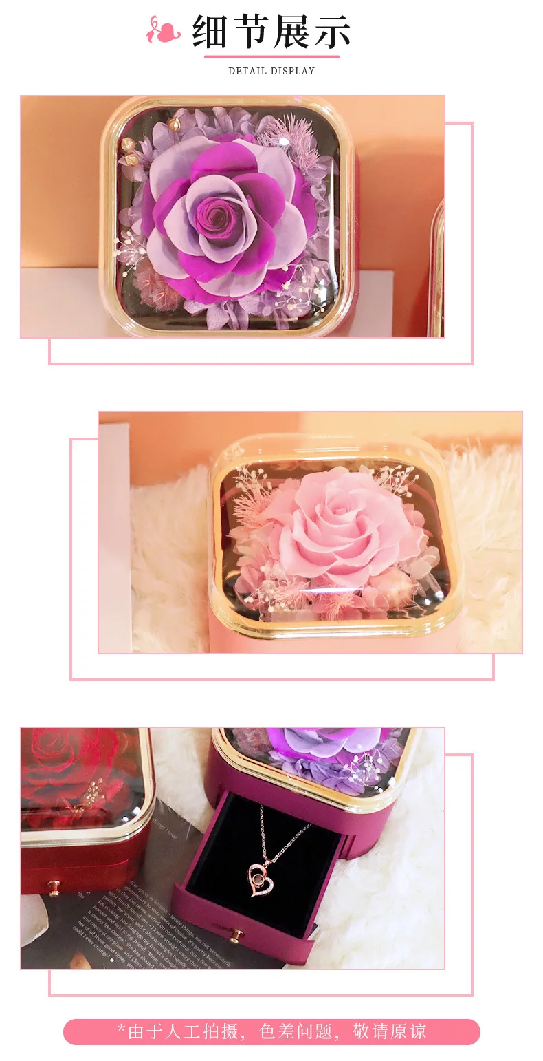 GR Valentine’s Day Rose Gift Box Artificial Flower Roses Hot Pink Roses Soap Flowers Jewelry Packaging Box Necklace