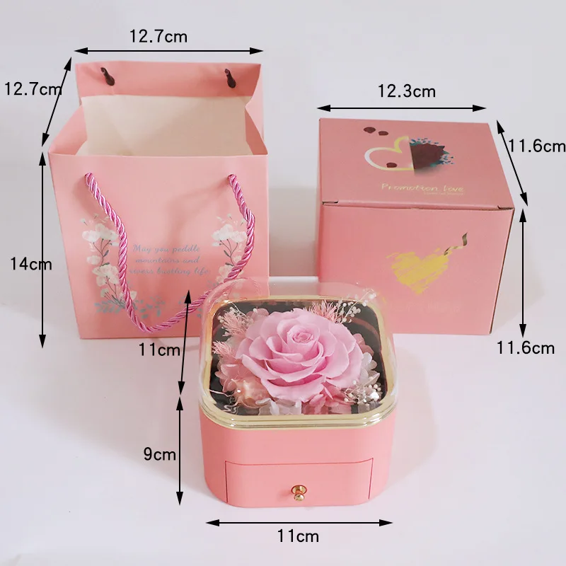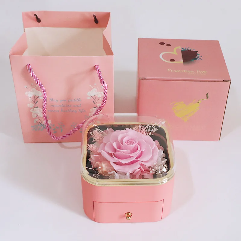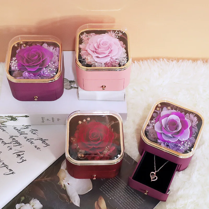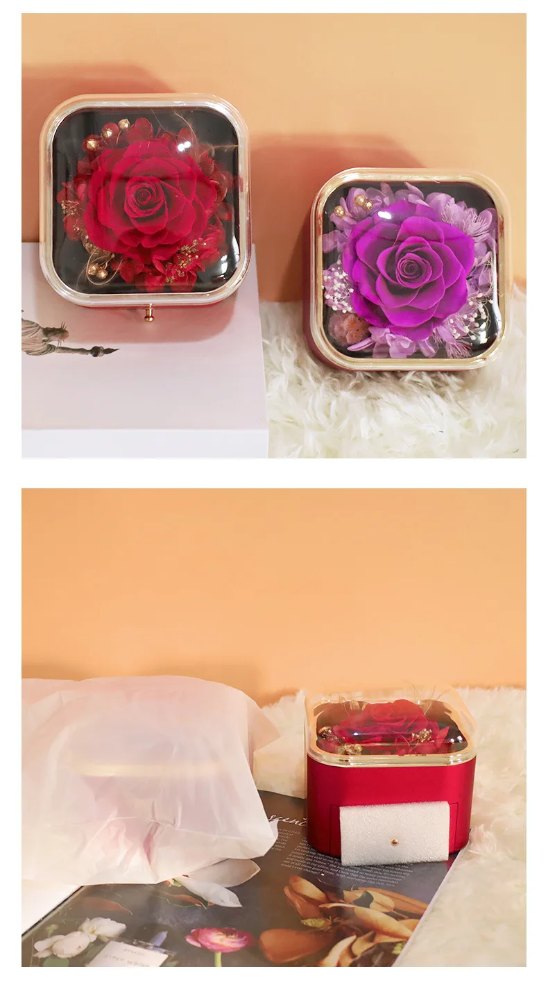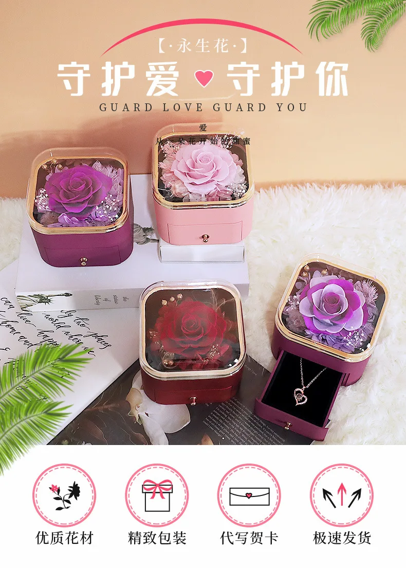 Guorui Christmas immortal flower heart shaped gift jewelry box red round spray paint rose jewelry