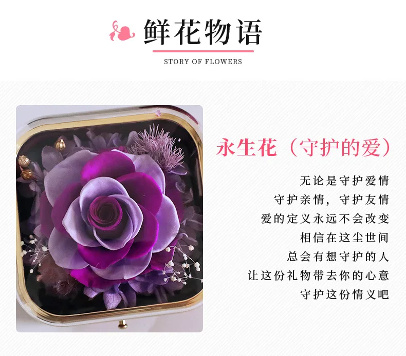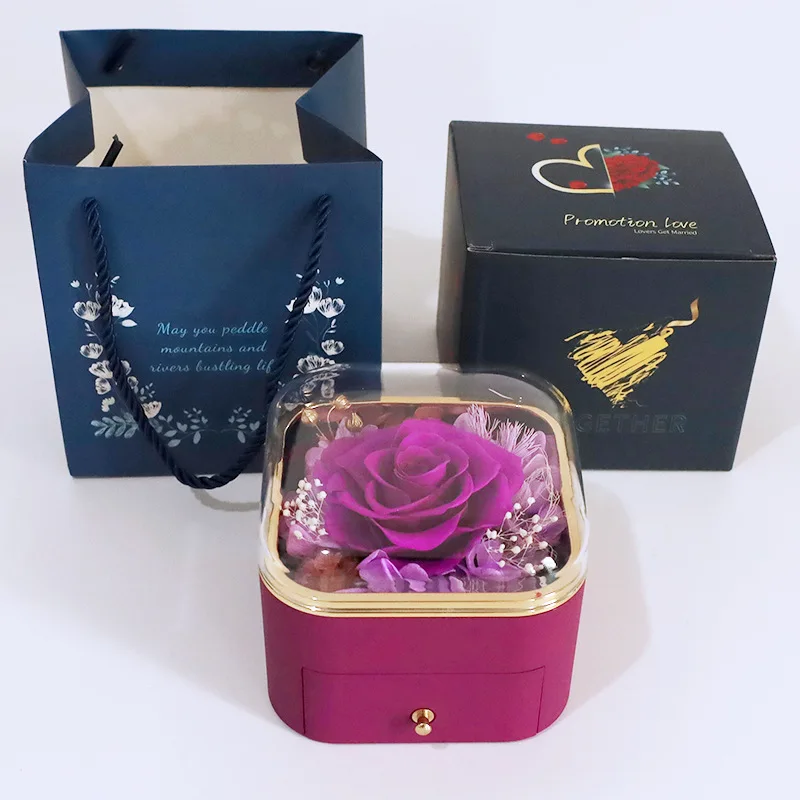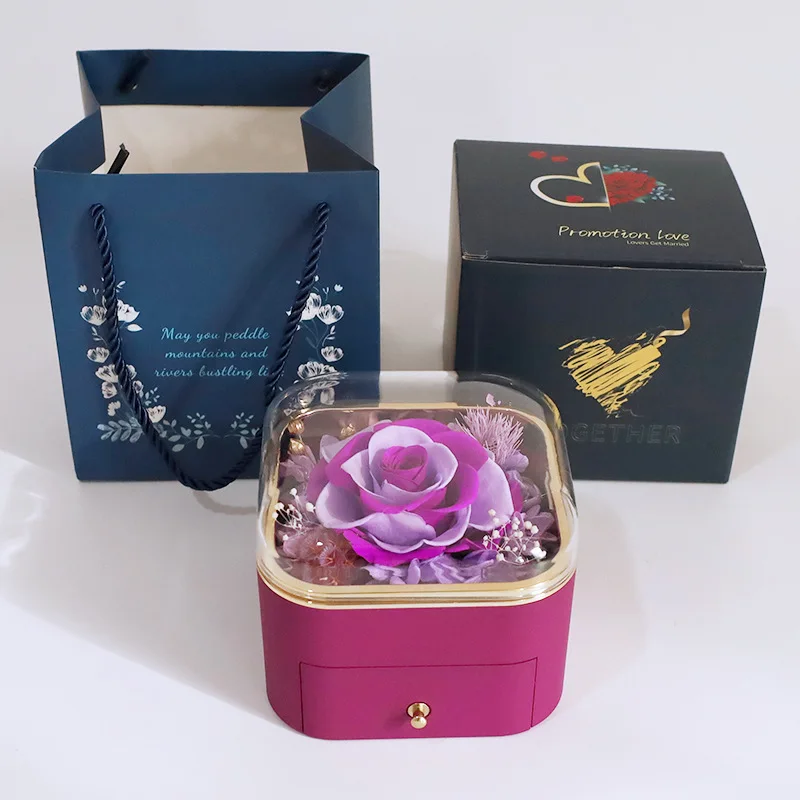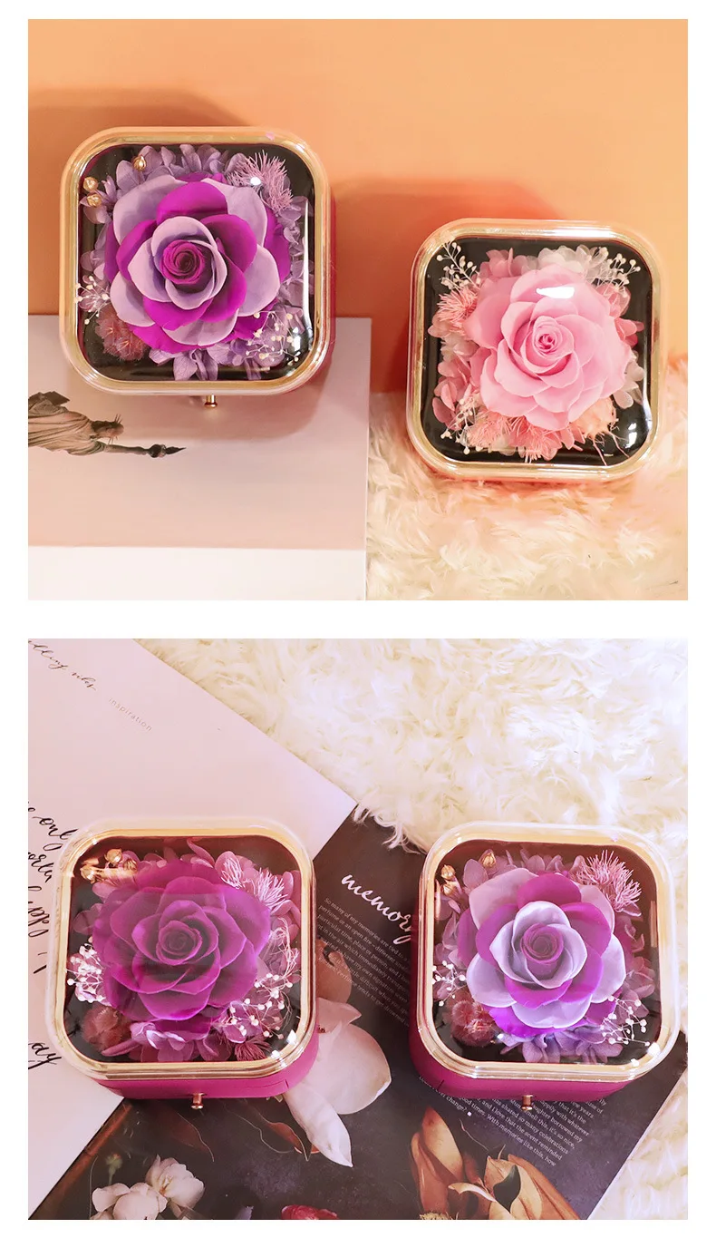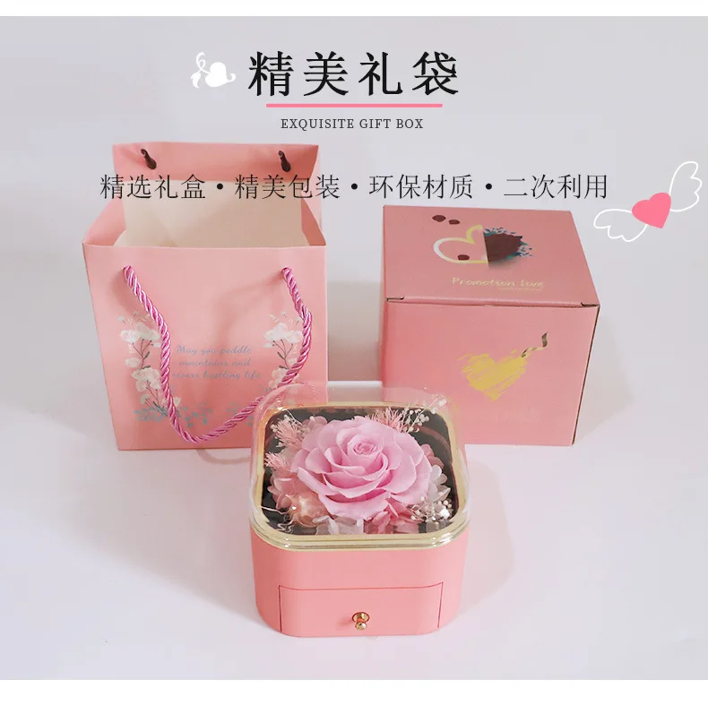 Guorui Christmas immortal flower heart shaped gift jewelry box red round spray paint rose jewelry