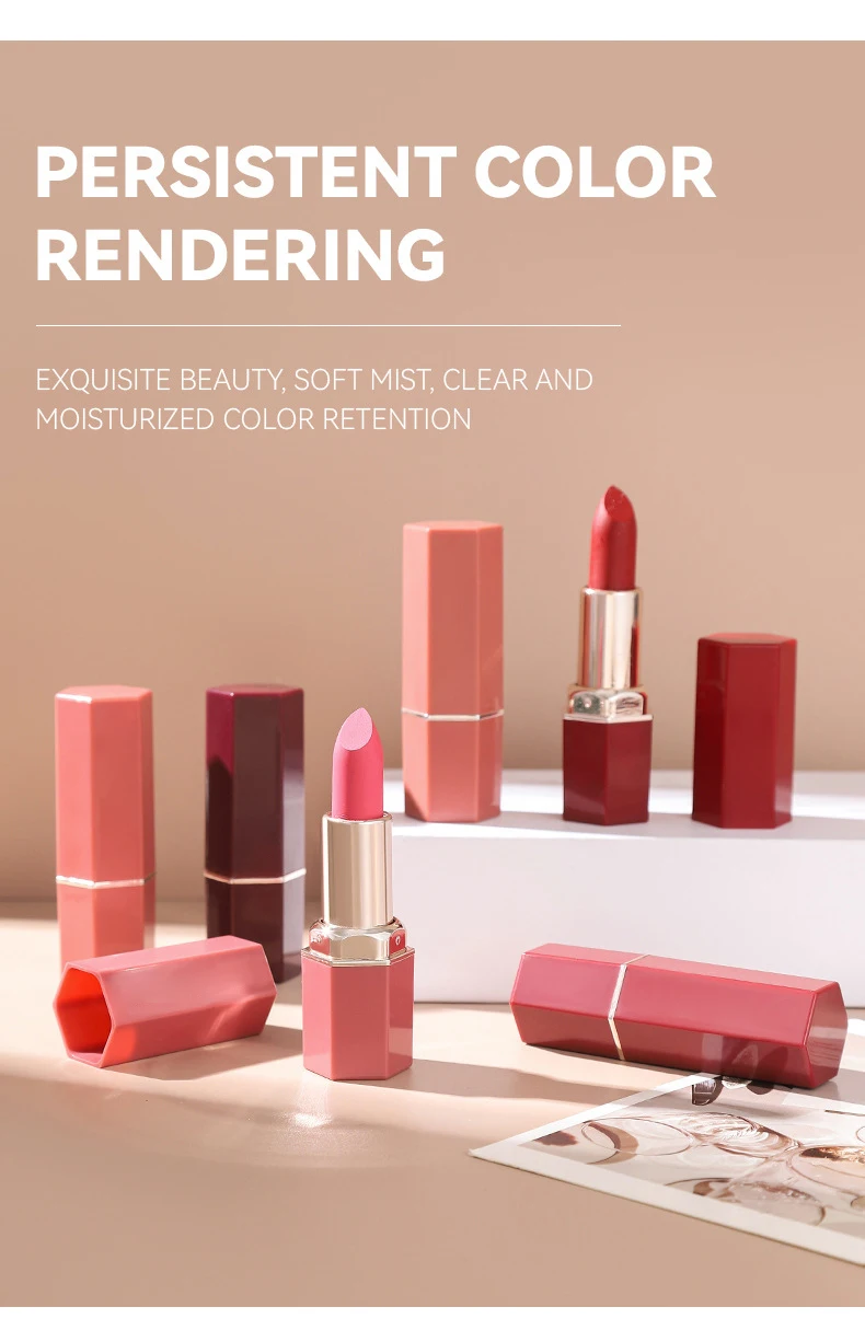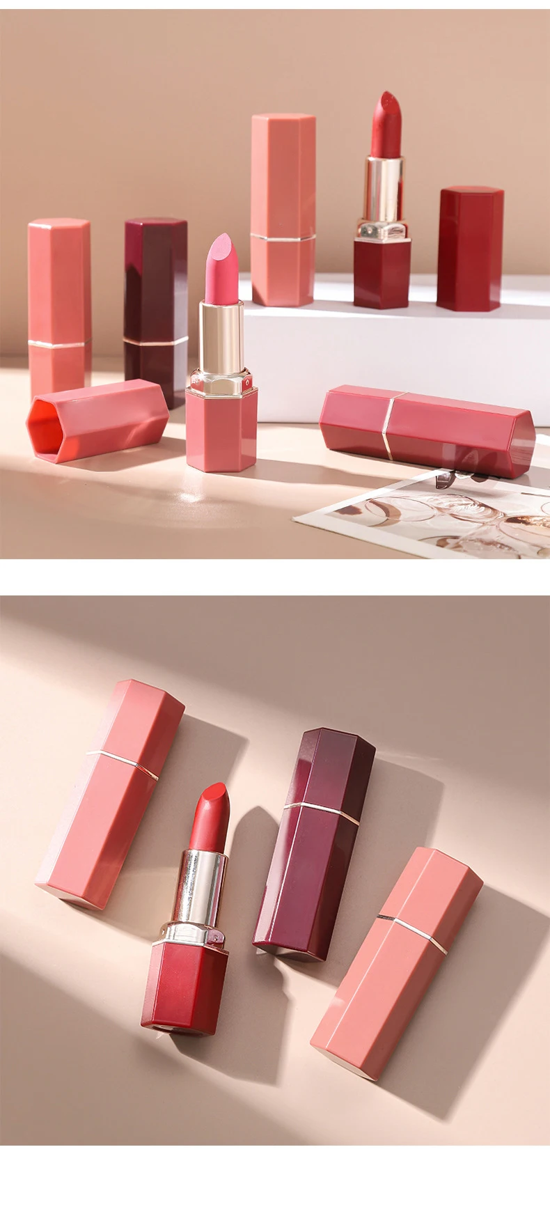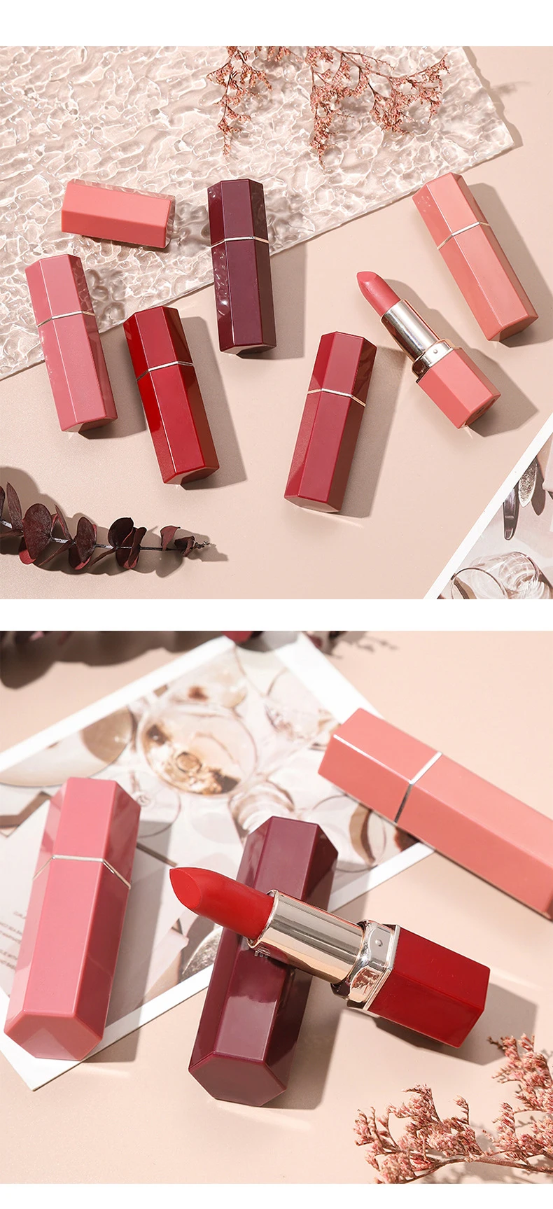Hot sale hexagonal matte lipstick is not easy to fade non-stick cup waterproof and long-lasting lipstick