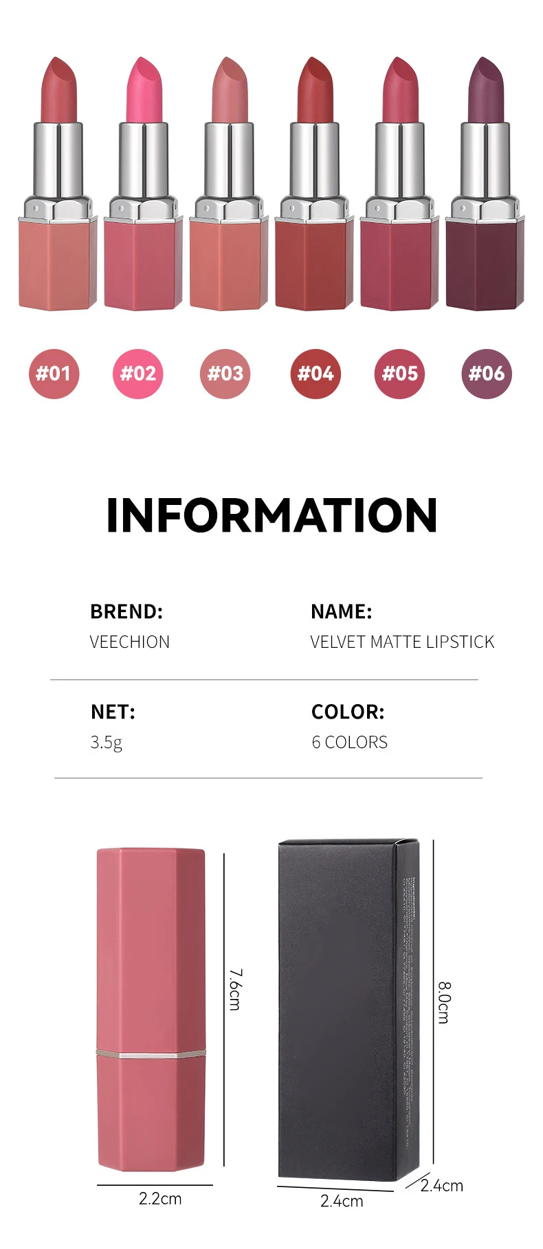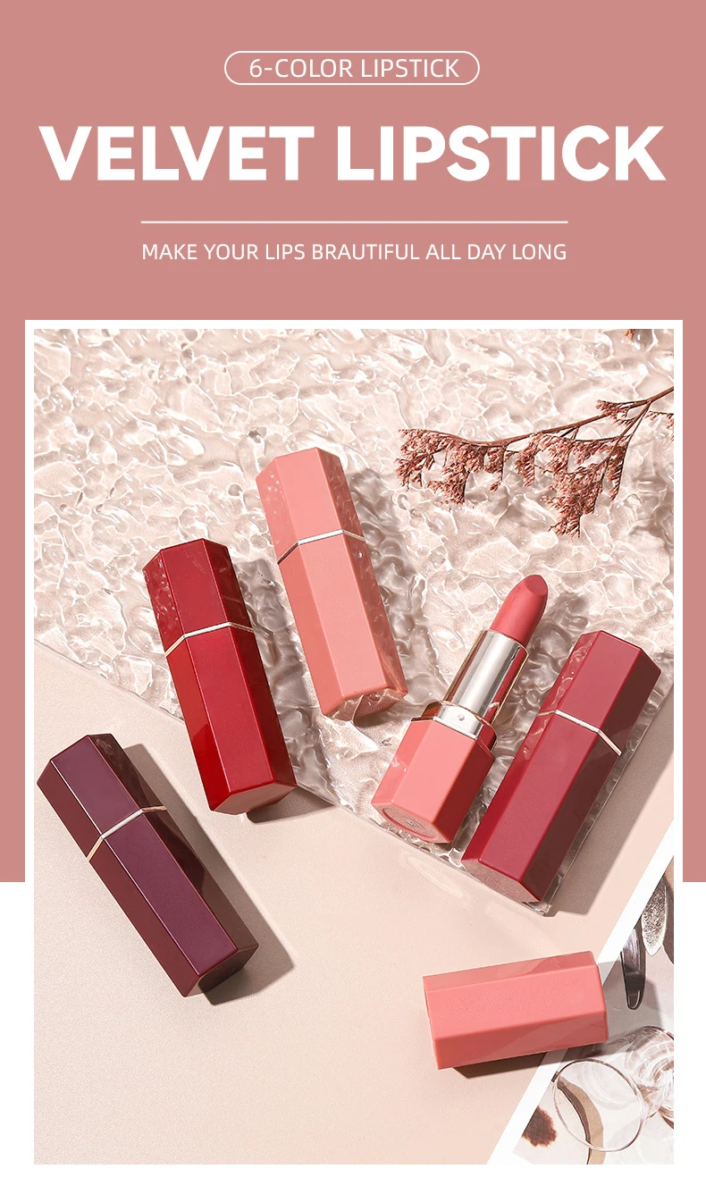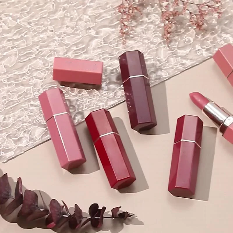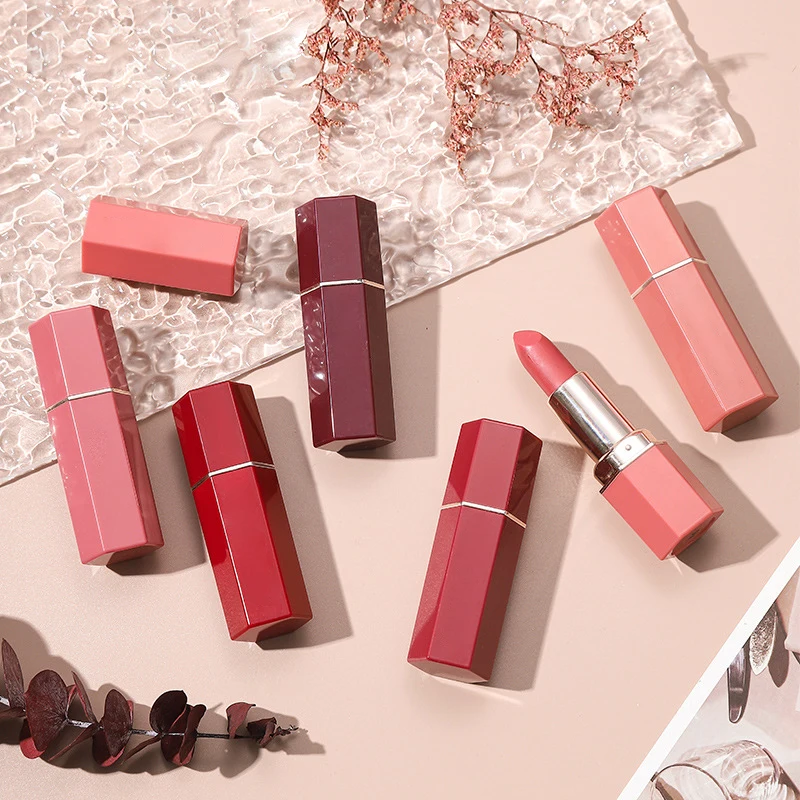 Hot sale hexagonal matte lipstick is not easy to fade non-stick cup waterproof and long-lasting lipstick