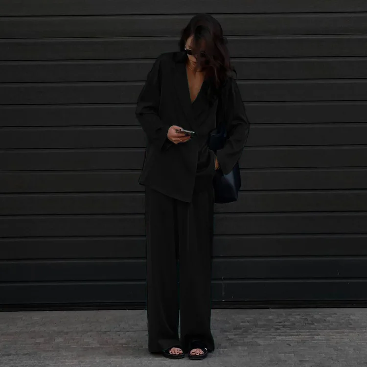 New Trend Custom Solid Loose Women’s Clothing Two Piece Set Long Sleeve Casual Lounge Wear Outfits for Women Satin Women’s Sets