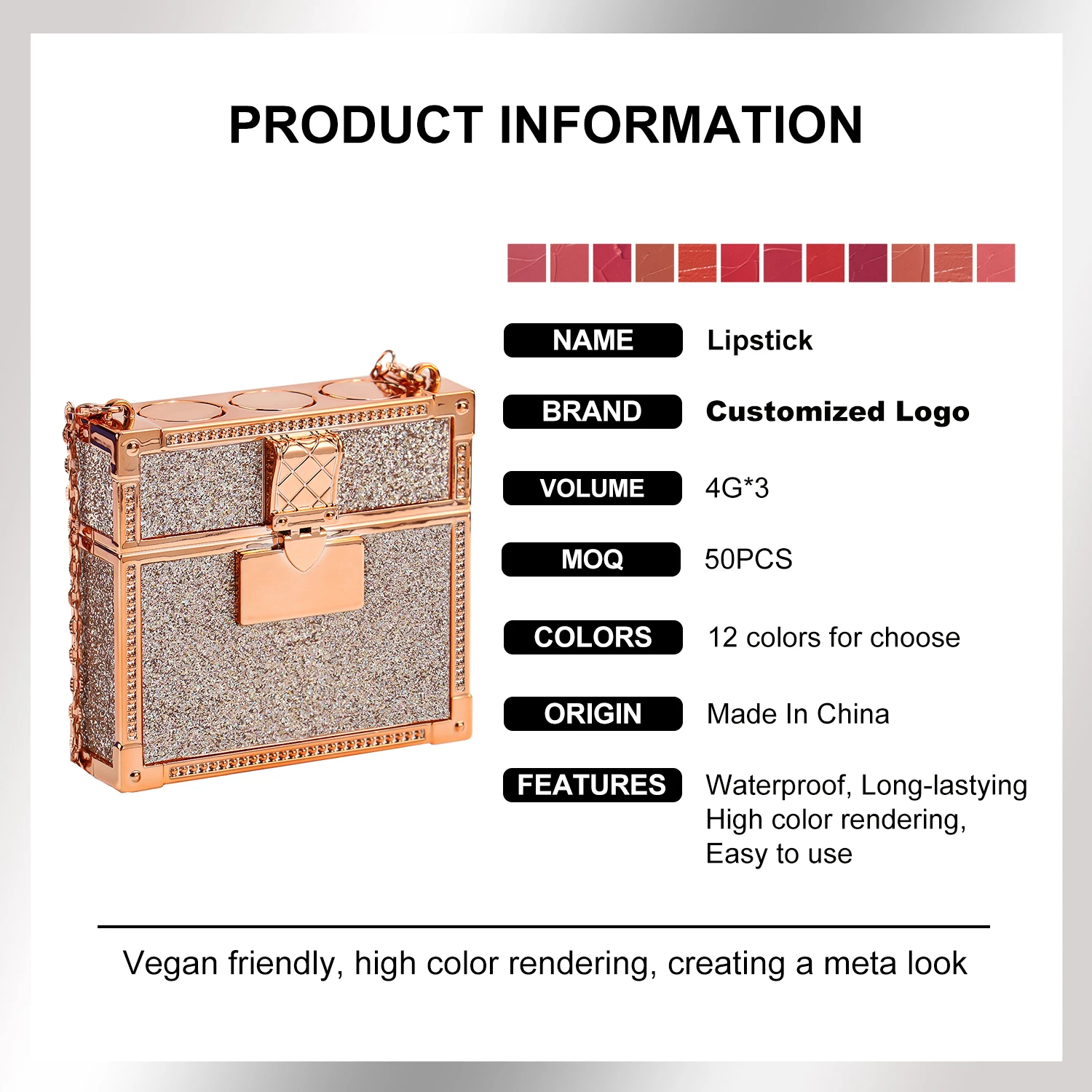 Product Name | Private Label Matte Lipstick 3-piece Set with Luxury Chain Bag Vegan Free Choice Lipstick Color Combination Creamy Lipstick |