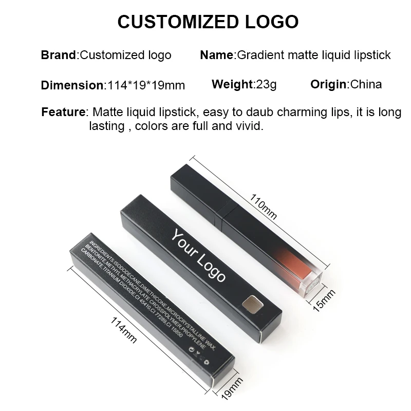 Waterproof Vegan Make Your Own logo Matte Liquid Lipstick Private Label Custom Lipstick