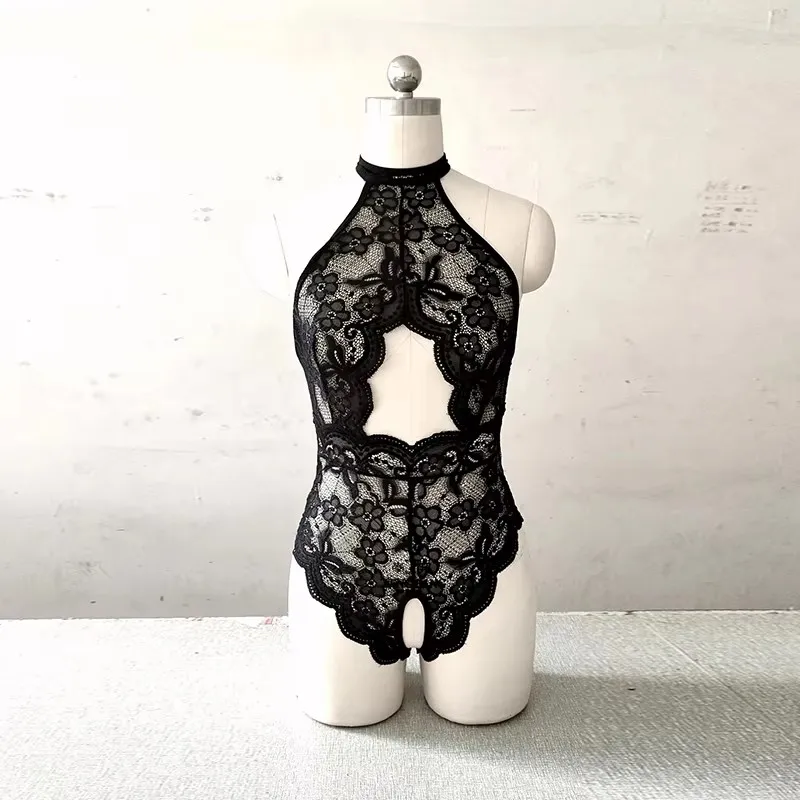 Women Sexy Lace Bodysuit Transparent Female Lingerie Open Crotch Lace Underwear for Ladies