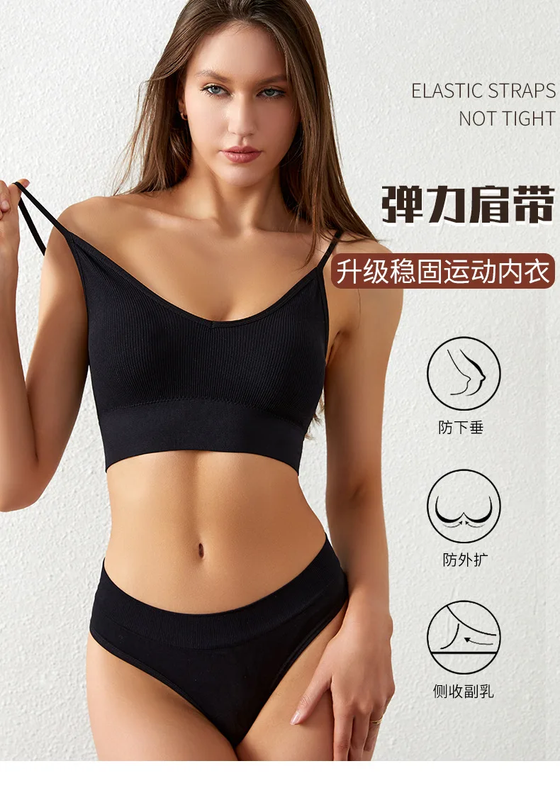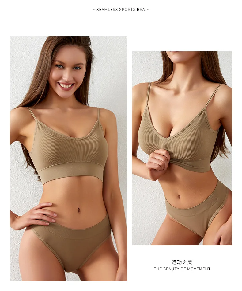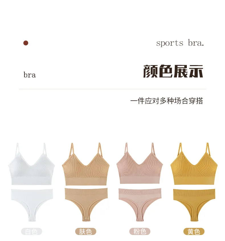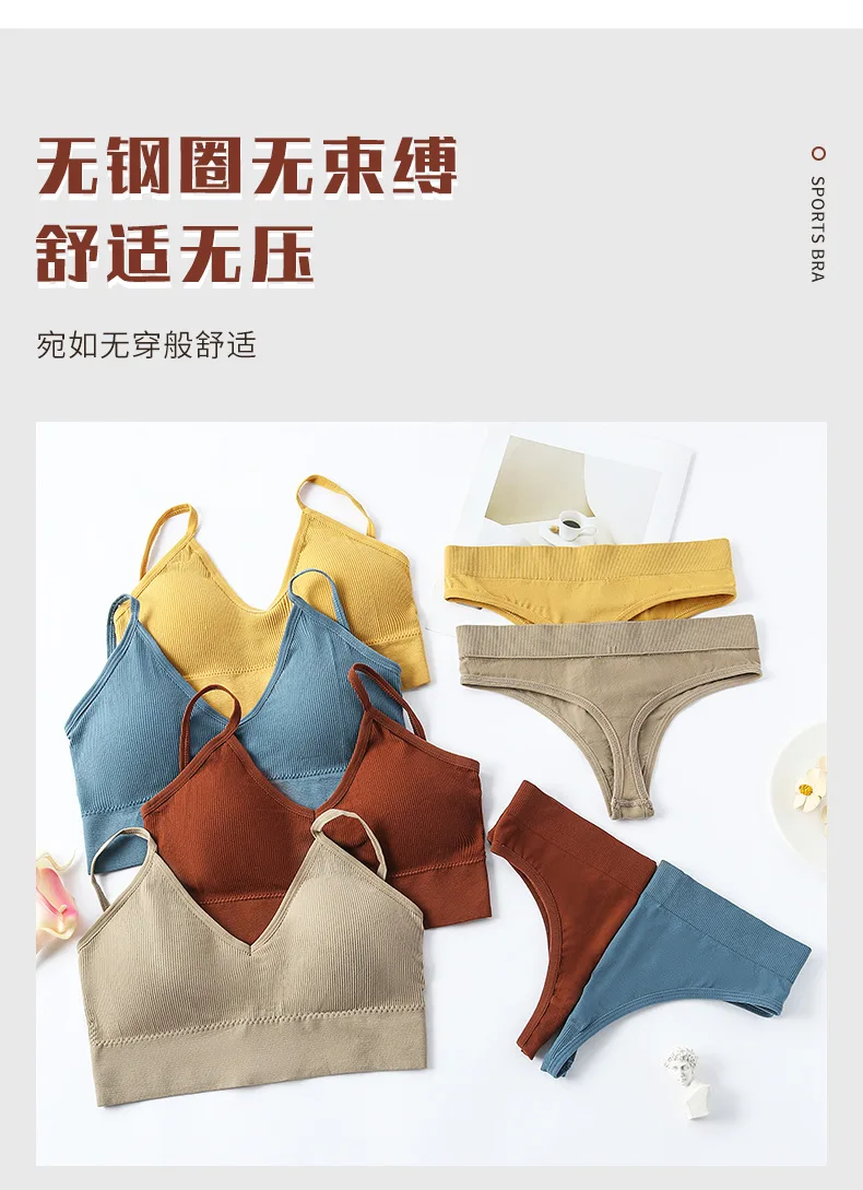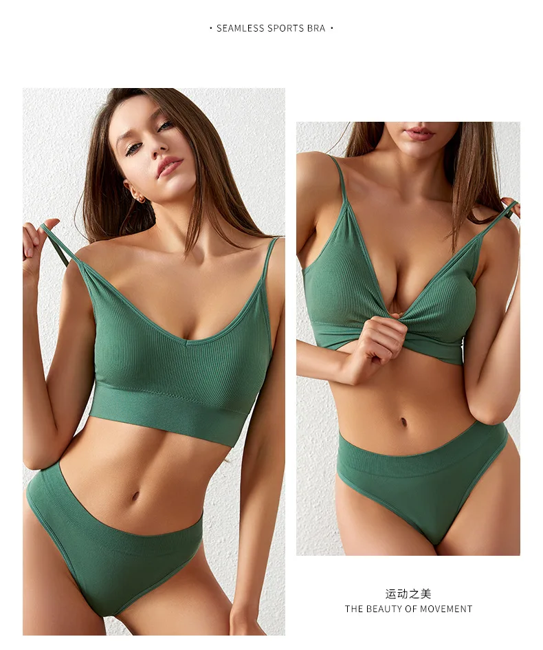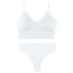 Women’s Plus Size Sports Bra Set Low-Rise Solid Thin Wireless Push-Up Underwear Thongs French Triangle Cup Adjusted-Straps for