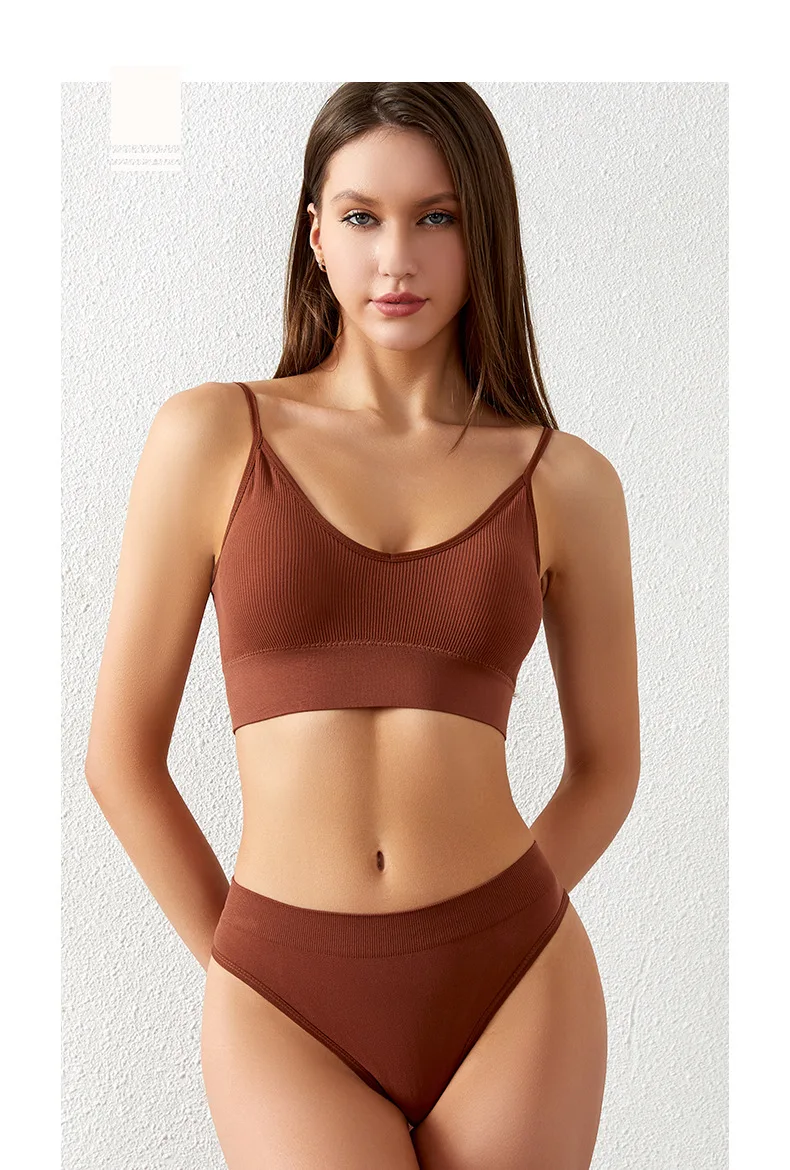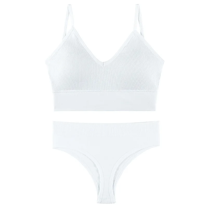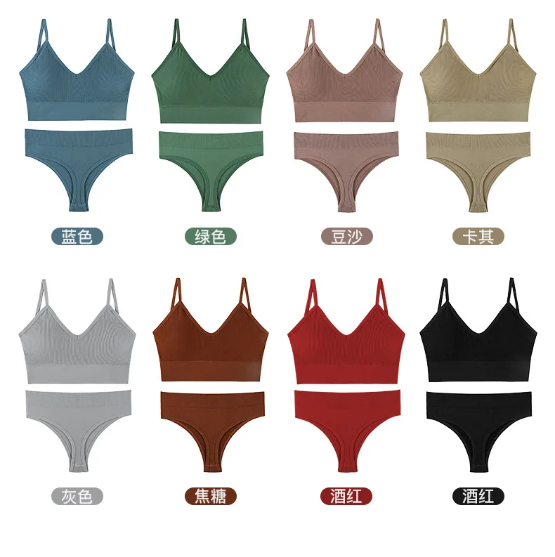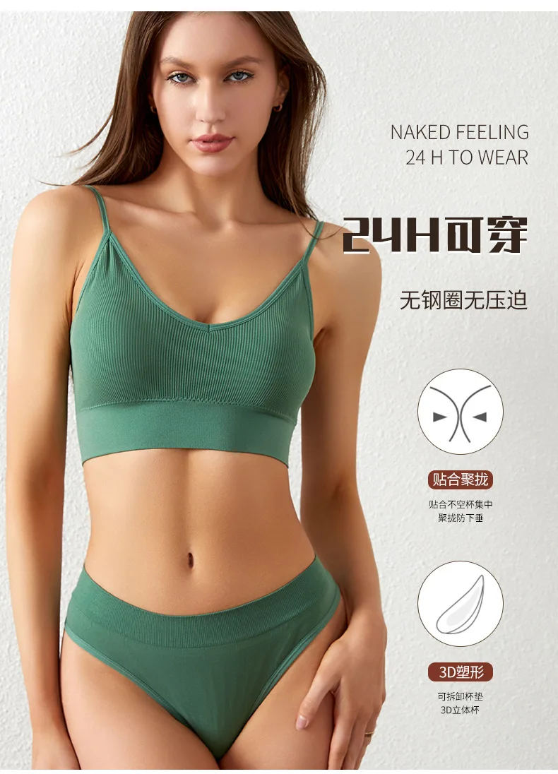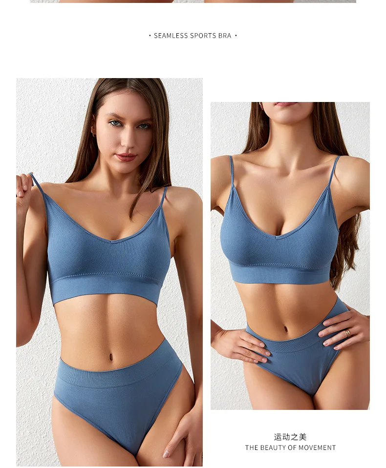 Women’s Plus Size Sports Bra Set Low-Rise Solid Thin Wireless Push-Up Underwear Thongs French Triangle Cup Adjusted-Straps for