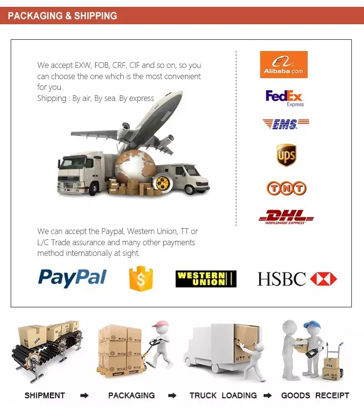 T/T.VISA.MasterCard.e-Checking.Boleto.Pay Later.PayPal.Wechat Pay.Alipay